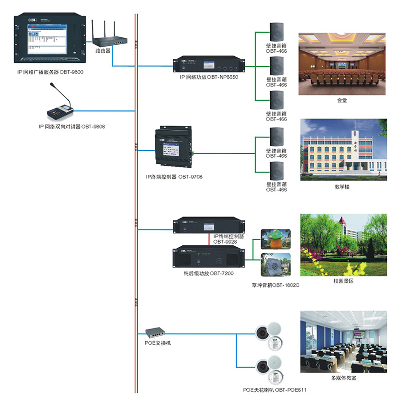 網(wǎng)絡(luò)廣播可以基于現(xiàn)有計算機網(wǎng)絡(luò)建設(shè),安裝時無需單獨布線,基于IP網(wǎng)絡(luò)的傳送,每個廣播點都可以有各自獨立的廣播節(jié)目,為廣播引入日常廣播提供了可行性。區(qū)別于傳統(tǒng)的音頻調(diào)頻以及可控制的智能廣播,是真正意義上的純數(shù)字化網(wǎng)絡(luò)廣播。應(yīng)用于網(wǎng)絡(luò)建設(shè),不僅真正實現(xiàn)音頻廣播、視頻監(jiān)控、計算機網(wǎng)絡(luò)的多網(wǎng)合一,其個性化、智能化產(chǎn)品設(shè)計,把理論概念做到真正實用化。在實際應(yīng)用中,通過軟件的管理設(shè)置,不管你廣播處于何處,搭建什么樣結(jié)構(gòu)的網(wǎng)絡(luò),只要基于TCP/IP網(wǎng)絡(luò)協(xié)議,就可以實現(xiàn)網(wǎng)絡(luò)廣播,廣泛應(yīng)用于:學(xué)校、寫字樓、大型商超、高速公路、大中型工廠企業(yè)、花園別墅小區(qū)、各星級酒店…
