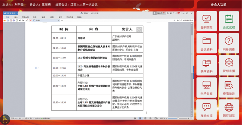 1.會前準(zhǔn)備:會前準(zhǔn)備包含會議室預(yù)約及管理,同時對確定的會議室設(shè)備進(jìn)行開會前資料上傳,席位的準(zhǔn)備及參會人員名字的錄入等。