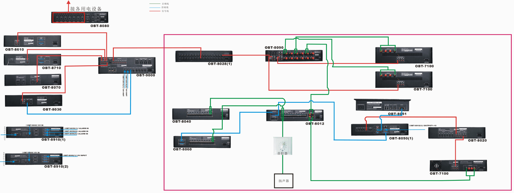 7.緊急廣播:公共廣播系統與消防廣播系統進行聯動,共用功放和揚聲器等設備,以最大限度的節約資源,系統通過報警發生器可自動接收消防信號,當有火警時廣播自動切入緊急信號,系統將自動將錄制好的報警音頻信號強制輸出至大廈內,第一時間內發現險情并疏散人群,搶救財務,避免人員傷亡和財產損失,保障大廈內一切安全。